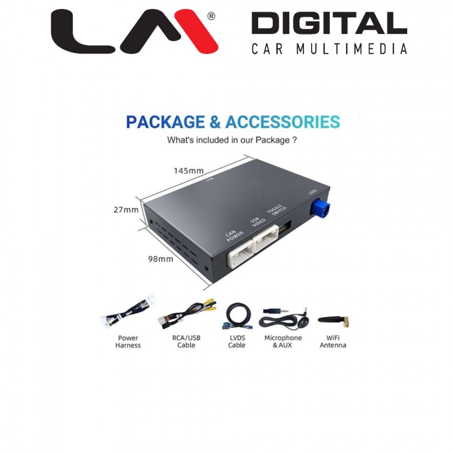 | Περιγραφή | Interface για ασύρματο Apple Car Play, Android Auto, Screen Mirrorink, Bluetooth, USB Player & Κάμερα κατάλληλο για Maserati 8,4inc Quattroporte 2013 > 2015 - Ghibli 2014 > 2017, διατηρώντας όλες τις εργοστασιακές ενδείξεις του ηχοσυστήματος στην οθόνη του αυτοκινήτου με πλήρη ενσωμάτωση των εργοστασιακών χειριστήριων του αυτοκινήτου. |
