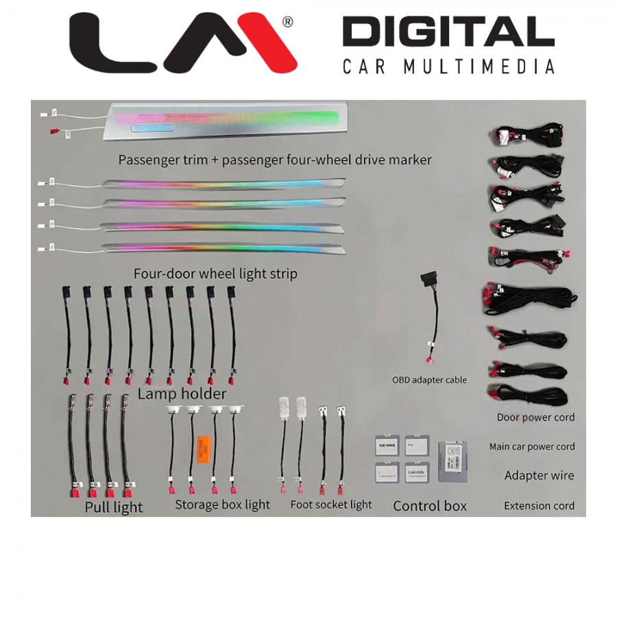 Ο φωτισμός LED ενσωματώνεται κομψά, αναδεικνύοντας τις γραμμές του ταμπλό και δημιουργώντας ένα premium περιβάλλον φωτισμού, παρόμοιο με αυτό των κορυφαίων μοντέλων Audi. Με RGB φωτισμό πολλαπλών χρωμάτων και δυνατότητα ρύθμισης έντασης, μπορείς να διαμορφώσεις την ατμόσφαιρα που επιθυμείς — από διακριτικό φωτισμό έως εντυπωσιακά χρωματικά εφέ.